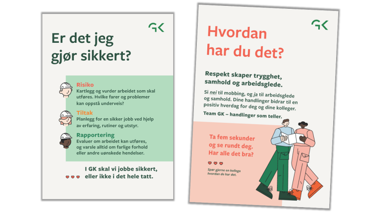 – For andre året på rad samles vi som gode kolleger i Skandinavia rundt vårt felles mål, alle skal trives og komme trygt hjem fra jobb i GK. Vi har jobbet med å løfte det tradisjonelle HMS-arbeidet og synliggjøre viktigheten av blant annet kommunikasjon, åpenhet og rapporteringskultur over tid, sier Martine, og legger til at trivsel og arbeidsmiljø er viktige byggestener for en god sikkerhetskultur: