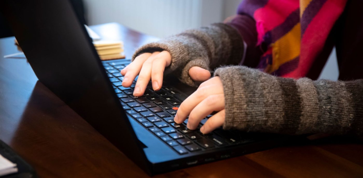 Kvinne som fryser på kontoret. Foto: GK Gruppen AS